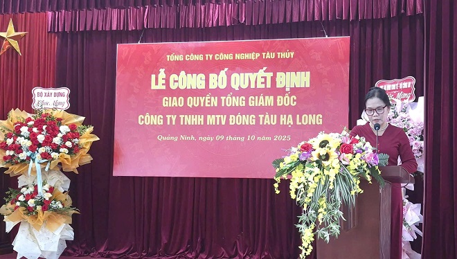 tàu Hạ Long trong quá trình phát triển chung của ngành công nghiệp tàu thủy Việt Nam, đồng thời bày tỏ tin tưởng rằng, với tinh thần đoàn kết, sáng tạo và quyết tâm đổi mới, cá nhân đồng chí Quyền Tổng giám đốc Hạ Long và tập thể Công ty TNHH MTV Đóng tàu Hạ Long sẽ tiếp tục phát huy truyền thống, vượt qua khó khăn, khẳng định vị thế là đơn vị chủ lực của ngành. Buổi lễ diễn ra trong không khí trang trọng, thể hiện quyết tâm của tập thể cán bộ, người lao động Đóng tàu Hạ Long trong chặng đường phát triển mới, hướng tới mục tiêu xây dựng doanh nghiệp ngày càng vững mạnh, góp phần vào sự nghiệp phát triển bền vững của Tổng công ty Công nghiệp Tàu thủy.