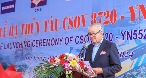 Phát biểu tại lễ hạ thủy, ông Nguyễn Tuấn Anh, Tổng giám đốc Công ty TNHH MTV Đóng tàu Hạ Long (Tổng công ty Công nghiệp tàu thủy - SBIC) cho biết, năm 2022 và năm 2023 Hạ Long đã ký với Tập đoàn Damen - Hà Lan series 8 tàu dịch vụ điện gió CSOV.